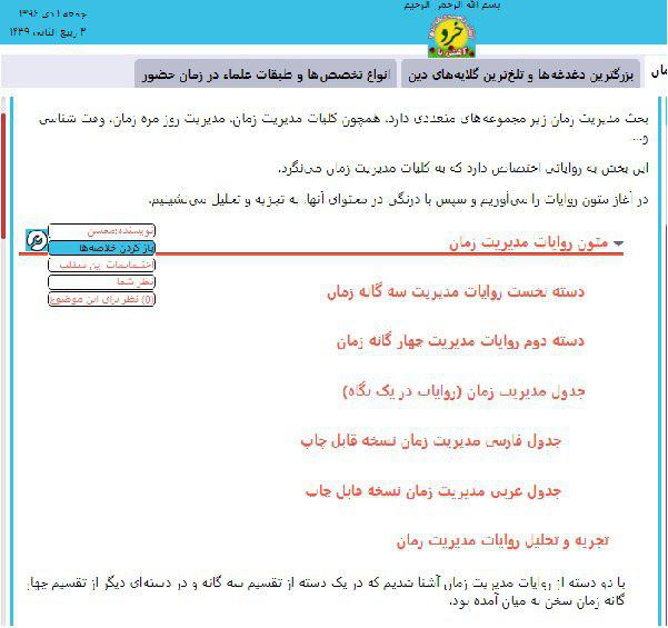 با انتخاب باز کردن خلاصه‌ها، سرفصلهای زیرمجموعه به همراه خلاصه‌ی آنها نمایش داده می‌شود. (تصویر شماره 3)