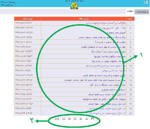 در صورتی که تعداد مقالات بیش از 20 مورد باشد، تعداد صفحات آن در این بخش نمایش داده می‌شود.