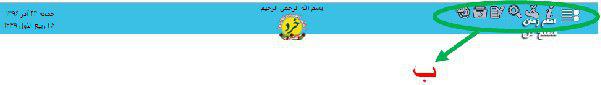 با کلیک کردن روی منوی دسترسی به ابزار سرصفحه (الف) نوار ابزار سرصفحه به نمایش در می‌آید مانند وضعیت نشان داده شده در نقطه (ب). (تصویر شماره ۳)